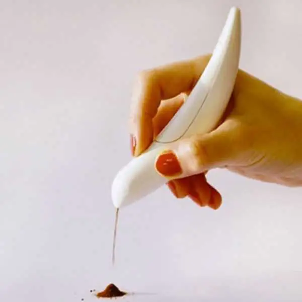 העט המגניב הזה יאפשר לכם להיות יצירתיים עם הקפה או האוכל שלכם. מאפשר ציור של ממש עם כל אבקה טחונה כמו כמובן, קפה, קינמון, תבלינים ועוד. פשוט ליחצו על הכפתור והתחילו לצייר.