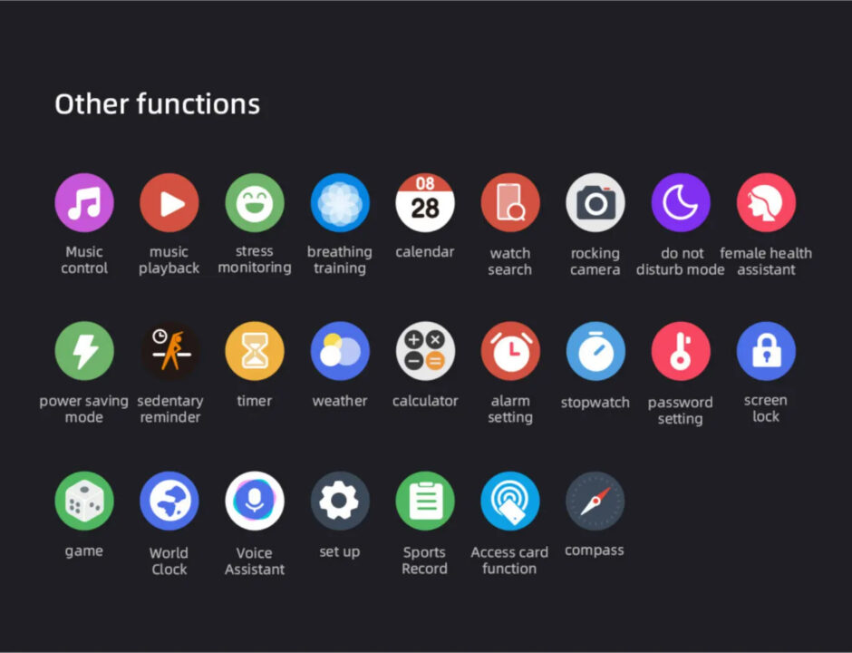 - חיישנים: חיישן דופק 4PD, ניטור חמצן בדם, חיישן תנועה 9 צירים (BOSCH-BMI270A 6 צירים + גיאומגנטי)